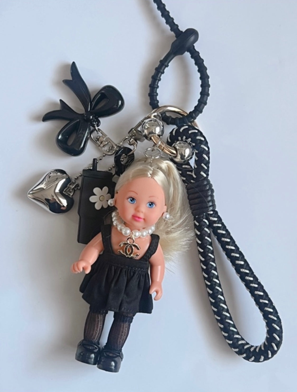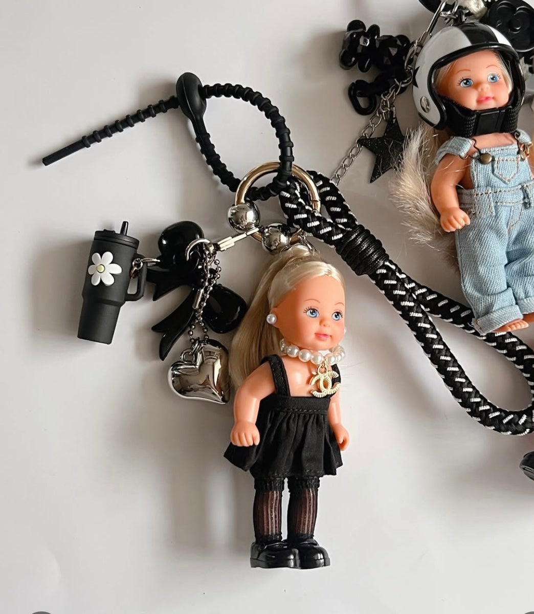 Doll, clothing, bag, self-made accessory keyring, O-ring, lead line